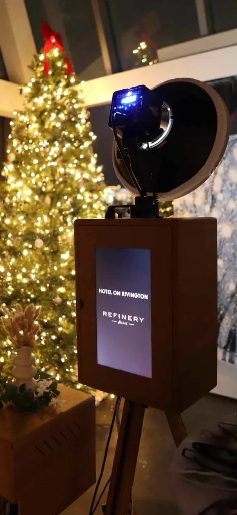 Whether it’s metallic backdrops and champagne props for a luxury brand or cozy, festive scenes for internal team parties, this season’s best events are leaning into custom, elevated holiday styling. Cinematic Booths offers curated décor add-ons—like flower walls, winter backdrops, and custom neon signage—to match your theme and venue aesthetic.